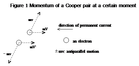 Next, the superconductive state is generated by Cooper pairs condensing into a same momentum (2). Namely, in the superconductive state, the size of momentum gm(V+V ')h of Cooper pairs in a system must be same. That means that energy to compensate the decrease of momentum is supplied by a mechanism characteristic of superconductivity when a Cooper pair loses energy by lattice vibration and collision with lattices and impurities and its momentum decreases.