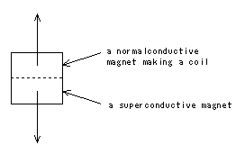Next, apart from the superconductive electromagnetic engine, let's think of a case to put an equipment of two ordinary electromagnets fixed each other on a desk and to pass electric currents to them. Since electric currents are passed, magnetic fields occur and magnetic force acts between two electromagnets. According to the law of action and reaction, the direction of the magnetic force to act on one electromagnet and the direction of the magnetic force to act on another electromagnet should be opposite and their strength should be same. Since the forces whose directions are opposite and strength is same act on one equipment, they deny each other and this equipment doesn't move in the nature of things. However, if an effect like denial of one of magnetic forces by some mechanism occurs, how will it be? Then, only a magnetic force of one direction acts on this equipment. At this equipment, a force with some strength acts in one direction. If the direction of this force is upward and stronger than the gravity which acts on the equipment, this equipment will move upward. Since it moves upward against the gravity, it can be said an antigravity equipment is realized.