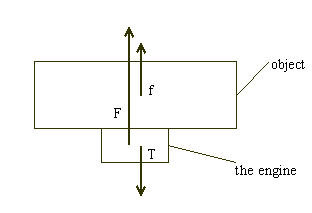 You fix the engine on the frame of vehicles, convey the electromagnetic force of the engine to the vehicles and move them. I show the figure which shows launching an object by the engine as an example. You make an electromagnetic engine touch the bottom of the object and fix the engine to the object. You suppose the upward electromagnetic force by the engine to be "F". You suppose the force of the object given by the engine to be "f". The engine receives normal force T as reaction against giving force to the object.